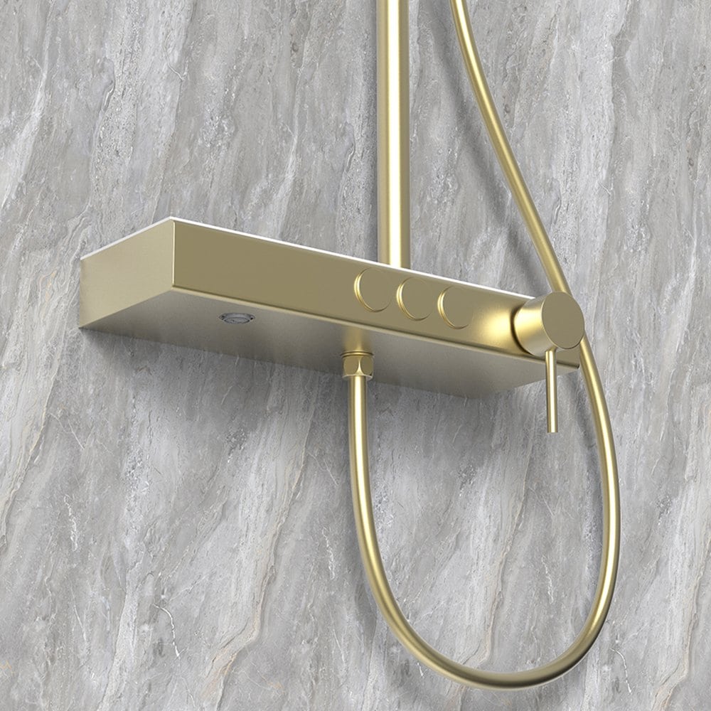 Upgrade your bathroom with our stylish and functional stainless steel exposed 3 function exposed push button shower column. This shower system is built with a 304 stainless steel shower mixer body, ensuring durability and a sleek look. Featuring two push buttons to control the outlets (shower head & hand shower), a lever handle for on/off and water flow control, and a convenient storage platform, this shower column combines practicality with modern design