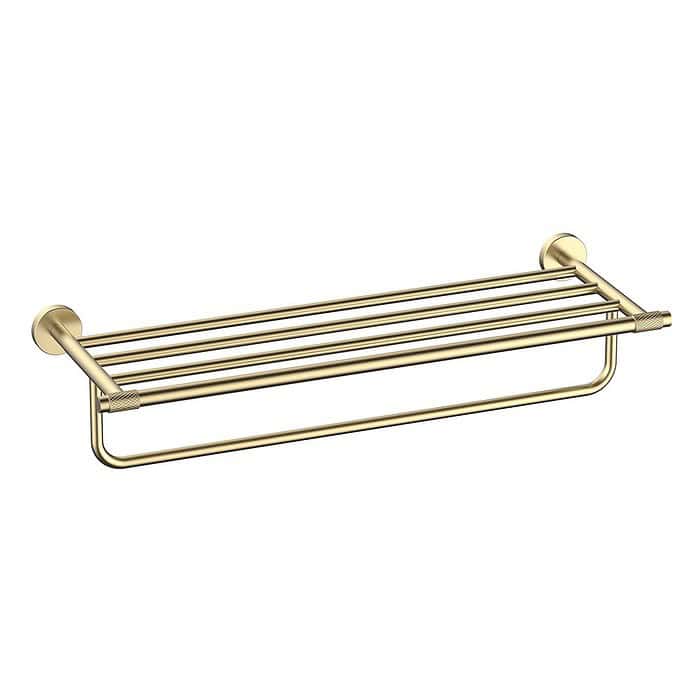 Elevate your bathroom’s functionality and style with our bathroom hanger shelf, beautifully crafted with a single towel bar. This premium shelf is made from durable materials and features an elegant gold and gunmetal finish, enriched with a distinctive knurling pattern design that adds a modern twist to its aesthetic.